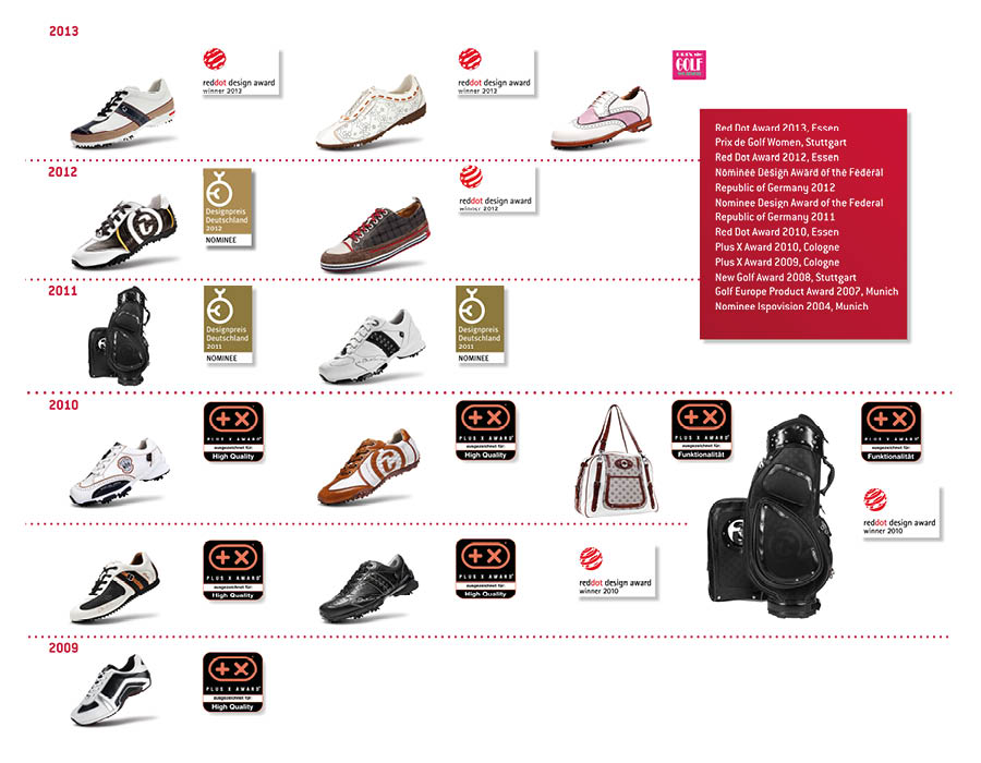 From the start Duca del Cosma has been given many awards for design and quality. We invented an innovative spikeless outsole design that turned out to be an overwhelming success. Our style has changed golf fashion and has brought a breath of fresh air to the World of Golf. Our numerous awards prove to which degree Duca del Cosma is Internationally renowned and respected.